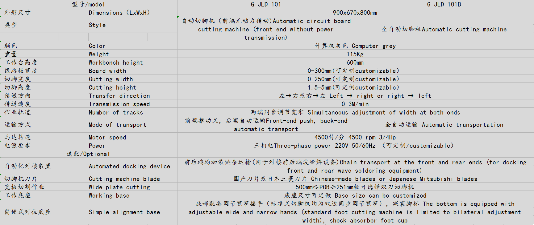5.標配最大作業PCB板寬度300mm,刀片最大可切250mm(刀片最大尺寸為250mm),可根據產品寬度配備雙刀切腳機